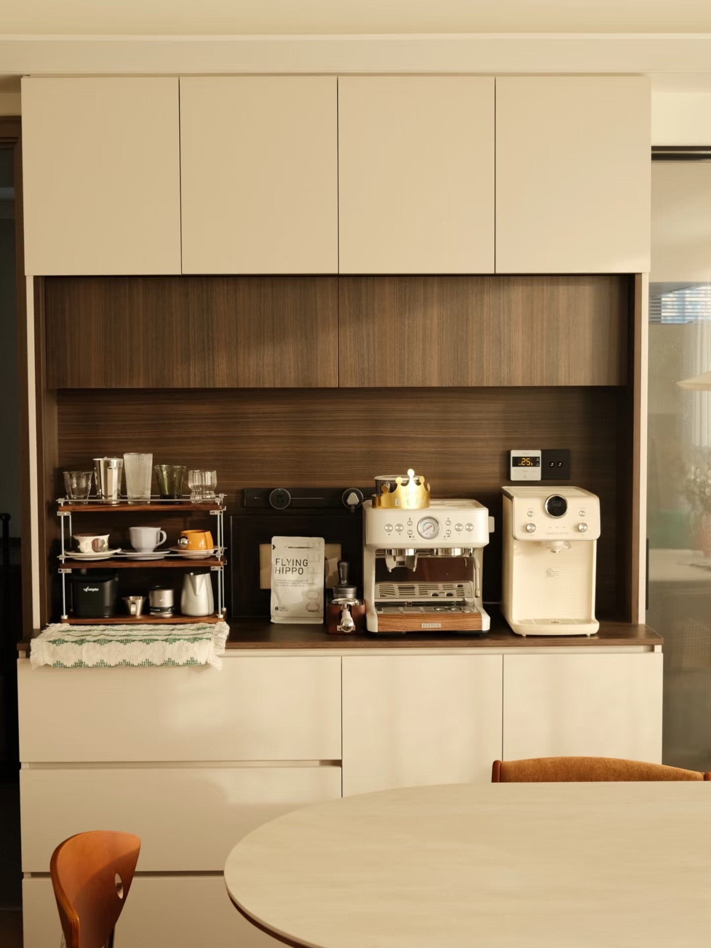Designed for flexibility, the modular construction allows shelves to be repositioned or expanded over time. Whether used in a kitchen, coffee corner, or living space, this system transforms storage into a refined display.